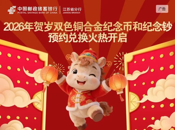2026年贺岁双色铜合金纪念币和纪念钞预约兑换火热开启 -凯发k8娱乐官网app下载2026-01-09 21:04来源:邮储银行江苏分行