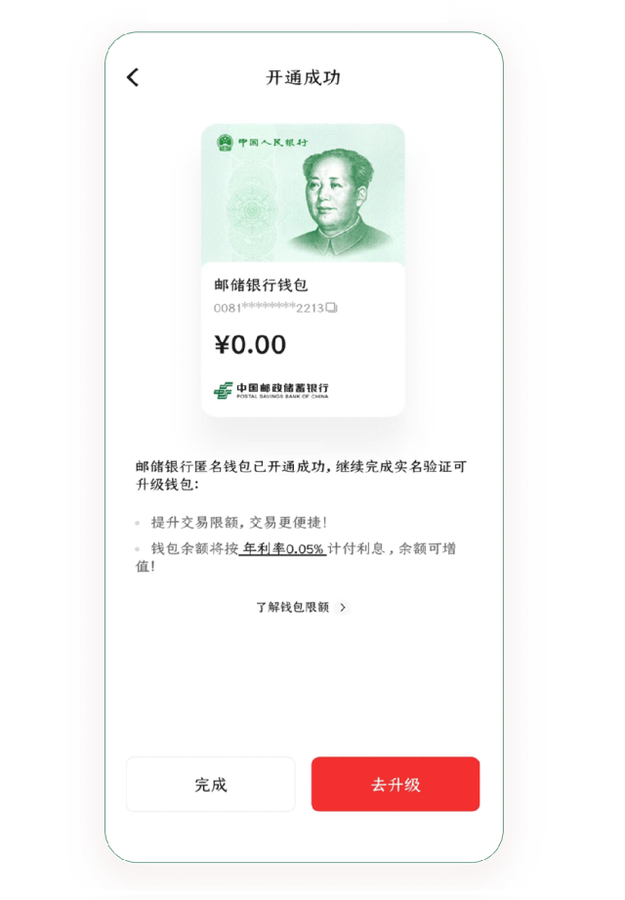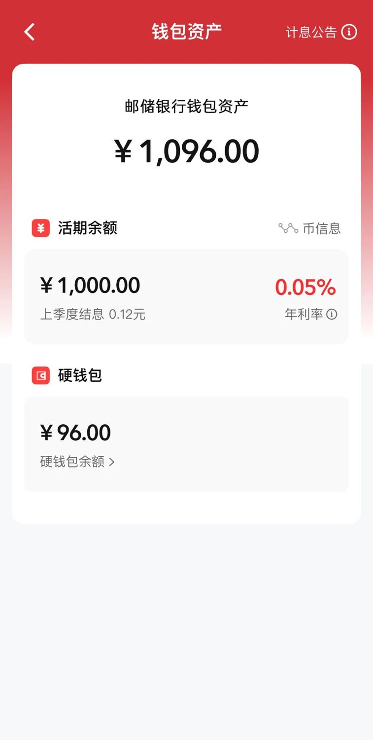 从2026年1月1日起,你的数字人民币钱包余额不再只是“数字化现金”,数字人民币实名钱包余额,现在开始按活期存款利率计息了。 ![]() 划个重点 数字人民币计息详解 简单来说,就是从2026年1月1日起,只要你开通的是数字人民币实名钱包(一类、二类、三类钱包),钱包里的余额就会按照银行活期存款的挂牌利率,自动计算利息。 计息规则和活期存款完全一致 每年3月20日、6月20日、9月20日、12月20日自动结息,利息会自动存入你的钱包。 你可以在数字人民币app的“钱包资产”页面和交易记录中,随时查看利息收入。 ![]() 钱包资产页 ![]() 结息入账通知 (请确保数字人民币app为最新版本) 对咱们客户有什么好处? 对个人客户 告别“闲置” 体验省心 数字钱包里的资金从此告别“闲置”状态,支付便捷性与资金收益性实现兼得。 日常消费、转钱支付随心用,余额利息日日生,真正达成“钱随人走、利随身生”的省心体验。 对企业客户 降本增效 业务升级 “支付即结算 余额计息”双重优势叠加,结合数字人民币智能合约、伞列钱包等特色产品,大幅降低资金在途成本。 不仅助力中小微企业优化现金流、减轻运营压力,更能为企业量身打造资金管理、供应链协同等智慧金融方案,实现降本增效与业务升级的双重提升。 怎么开通和查看? 如果你还没开通数字人民币钱包,只需几步: ←左右滑动查看更多→ ① 下载“数字人民币app” 选择“邮储银行”作为运营机构 ![]() ② 验证身份 ![]() ③ 设置密码 ![]() ④ 开通成功,立即体验 ![]() 已有钱包的用户,无需任何操作,自动享受计息服务。 为了数币从“现金”到“存款” 我们做了什么? 这次数字人民币从“现金”到“存款”的跨越升级,可不是简单的一句话。 接到人民银行相关要求后,邮储银行第一时间组建专项工作组,集结业务、研发、测试全线骨干力量,倒排工期,全力推进项目攻坚,先后完成50多个关联系统的改造升级,新增优化100余项核心功能,执行超4000个测试案例。 依托邮储银行“两地三中心”高可用部署架构和自主研发的热切组件,在2026年1月1日凌晨,邮储银行顺利实现系统不停机、用户无感知的全量切换。 未来,还有更多想象空间 邮储银行将持续深耕“支付 金融”综合服务生态,以数字人民币创新应用赋能金融“五篇大文章”落地,不断拓展智能合约、普惠金融、供应链协同等特色场景,为用户带来更多智能、增值的体验。 数字人民币2.0时代的大幕已拉开,我们愿与每一位用户同行,共赴这场数字金融的全新旅程。 如果觉得这份“钱生钱”的惊喜实用,不妨分享给身边的人,让更多人解锁数字人民币的全新打开方式!