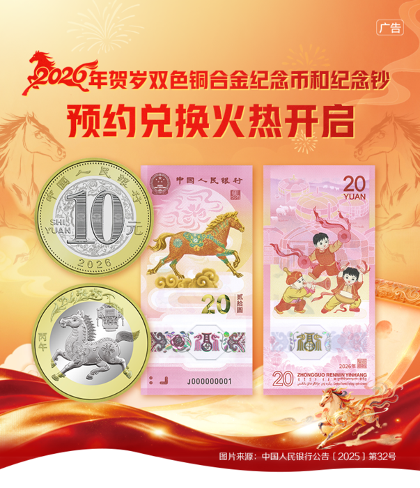 2026年贺岁双色铜合金纪念币和纪念钞预约兑换火热开启 -凯发k8娱乐官网app下载2026-01-12 00:00来源:邮储银行连云港市分行