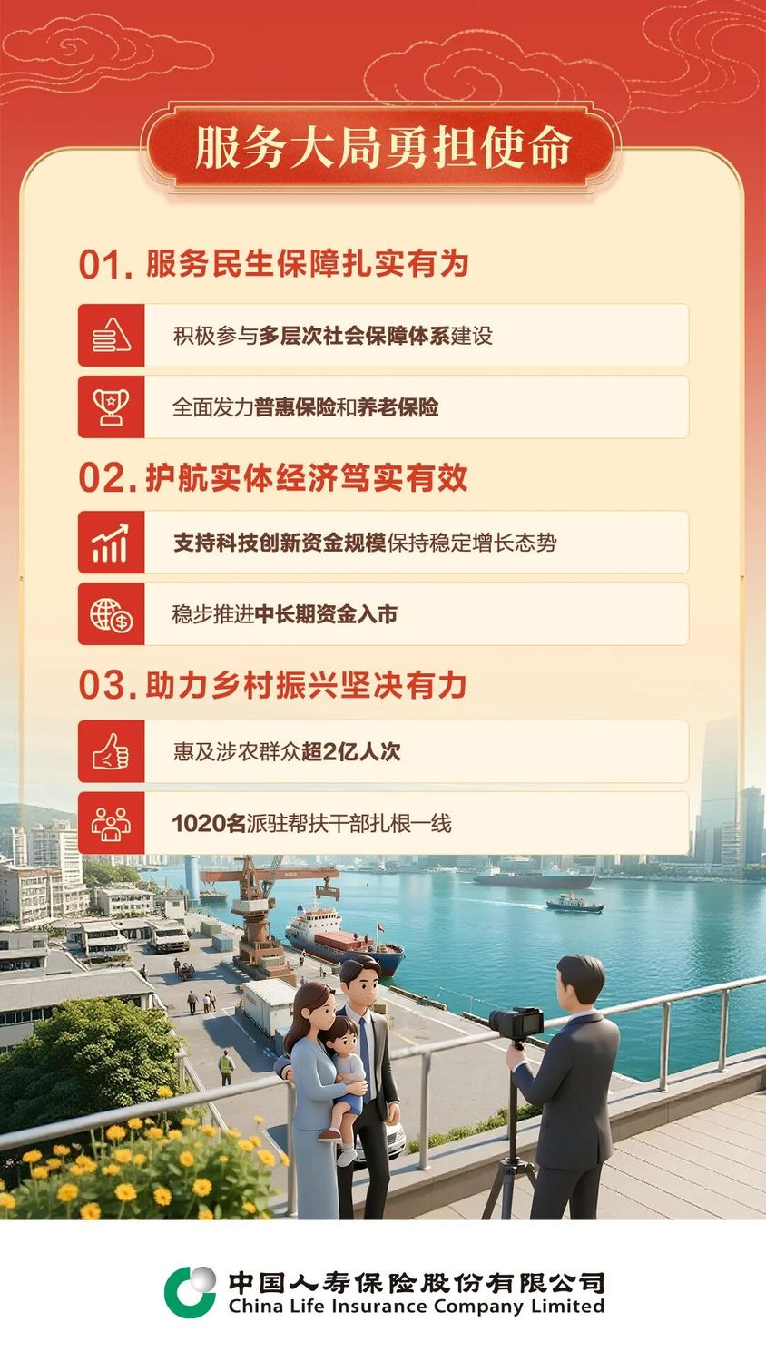 ![]() 工作会议快讯四 1月30日,中国人寿集团旗下寿险公司在京召开2026年工作会议、2026年全面从严治党暨纪检工作会议。会议深入学习贯彻党的二十大和二十届历次全会精神,认真贯彻中央经济工作会议、全国金融系统工作会议部署,落实集团工作会议要求,总结工作,分析形势与任务,部署2026年重点工作,团结带领广大干部员工,坚定不移走中国特色金融发展之路,坚决落实集团“333战略”,确保“十五五”开好局、起好步,向建成中国特色世界一流寿险公司奋勇前进。 ![]() 中国人寿董事长蔡希良出席会议并讲话,充分肯定了2025年的工作:坚持党的全面领导,经营管理各项工作取得满堂红,实现“十四五”顺利收官,为集团“333战略”平稳起步做出突出贡献,全方位巩固了头雁地位。蔡希良指出,要以时不我待的紧迫感抢抓“十五五”发展机遇;要坚定信心扬优势,跳出保险谋发展,培育企业核心竞争力;要做数智变革的先行者,做未来国寿的示范生;要以高质量党建引领公司高质量发展取得新成效。蔡希良强调,全系统要认真贯彻落实好集团“333战略”,打好“十五五”首战,为建设中国特色世界一流寿险公司不懈努力。 中国人寿寿险公司党委书记、总裁利明光作了题为《乘势而上 锐意改革 奋力实现“十五五”良好开局》的报告。报告指出,2025年是“十四五”收官之年,也是落实集团“333战略”首年,面对极其复杂多变的外部环境,全系统以党建为引领,迎难而上,核心指标再攀高峰,高质量发展迈上新台阶。 ![]() 党建引领全面加强 着力推动党建工作与业务发展深度融合,以高质量党建引领高质量发展。常学常新强化理论武装,有序有效推进一体整改,全面从严治党纵深推进,见行见效夯实党组织建设。 ![]() 服务大局勇担使命 深入践行金融工作的政治性、人民性,立足保险“两器”功能,全力做好金融“五篇大文章”。 一是服务民生保障扎实有为,积极参与多层次社会保障体系建设,全年赔付支出创历史新高。健康险业务延续回升向好态势。全面发力普惠保险和养老保险,产品供给更加丰富,满足群众多元化保险保障需求。 二是护航实体经济笃实有效,将保险资金精准投向实体经济重点领域和薄弱环节。支持科技创新资金规模保持稳定增长态势,有力支持新质生产力发展。稳步推进中长期资金入市,以实际行动支持资本市场发展。 三是助力乡村振兴坚决有力,学习运用“千万工程”经验,围绕农村生产生活特定风险场景研发专项产品,惠及涉农群众超2亿人次。1020名派驻帮扶干部扎根一线,扎实推进定点帮扶、产业帮扶、保险帮扶、消费帮扶等重点工作。 ![]() 高质量发展向新向优 经营发展实现“满堂彩”,年度总保费突破7000亿元大关,总资产、投资资产双双突破7.2万亿。强化“一个国寿 一生守护”主旋律,服务综合金融更加有力。经营发展成色十足,业务结构更加均衡,经营质效稳步提升,投资收益大幅提高。全渠道经营协同发力,形成多极驱动发展格局。政策性健康险业务规模、城市商业医疗险承办数量均达历史最高水平,长期护理保险经办覆盖面不断扩大。 ![]() 改革创新纵深突破 坚持以改革创新为根本动力,加快推动重点领域突破,进一步激发新动能、新活力。一是改革部署统筹有力,全面部署面向未来的全面深化改革主要任务,集中力量攻坚突破,培育新的核心竞争力。二是渠道转型释放活力。三是康养生态建设加速前行,推出国寿“随心居”首批4款旅居养老产品。四是数智变革赋能升级,业内率先实现核保体检件全流程无人工处理。主动拥抱人工智能浪潮,成功研发流程自动化机器人等人工智能赋能平台,推动量化核保、ai理赔等大模型落地应用。 ![]() 风险防控筑牢屏障 强化底线思维,有效防范化解各类风险,以新安全格局保障新发展格局。一是风险管理体系不断优化,持续夯实内控管理基础,升级风险监测体系,切实提升风险“四早”能力。偿付能力充足率始终高于监管要求,风险综合评级连续8个季度为aaa最高评级。二是重点领域风险有效防控。三是消保工作持续深化,集中教育宣传活动有效触及消费者超5.77亿人次,同比提升31.4%。 ![]() 报告指出,中国人寿寿险公司高质量发展成效获得社会各界的高度认可,斩获“年度卓越人寿保险公司”“2025保险业普惠金融实践方舟奖”“保险业投资金牛奖”等60多项重量级荣誉,标普全球寿险50强榜单中位居第一,明晟(msci)esg评级上调至aa级,可持续管理水平保持领先。 会议分析了“十五五”时期的发展形势,并提出在推进建设中国特色世界一流寿险公司实践过程中,要坚持稳中求进工作总基调,做到“六个坚持”:即 坚持党的领导、人民至上,把政治性、人民性贯穿工作始终。 坚持服务大局、功能第一,专注主业、错位发展,全面发挥“两器”功能。 坚持资负联动、多元发展,进一步增强发展韧性。 坚持价值为先、提质增效,实现内涵式、可持续发展。 坚持深化改革、创新驱动,构建高质量发展强大动力。 坚持长期持续、安全稳健,推动合规经营理念深入人心。 ![]() 会议指出,2026年工作的总体思路是:以习近平新时代中国特色社会主义思想为指导,全面贯彻落实党的二十大和二十届历次全会、二十届中央纪委五次全会、中央经济工作会议、全国金融系统工作会议精神,坚持高质量发展主题,坚持稳中求进工作总基调,