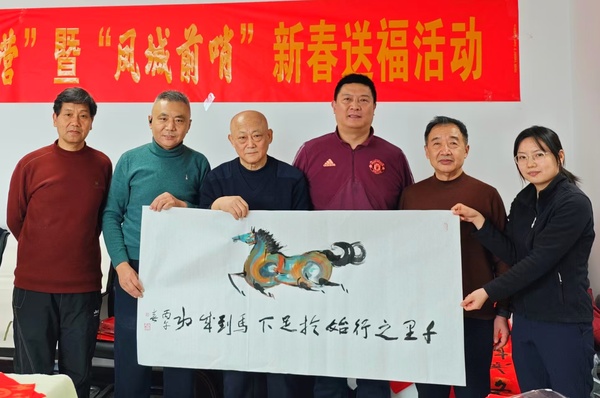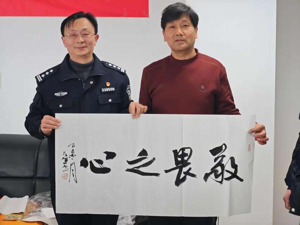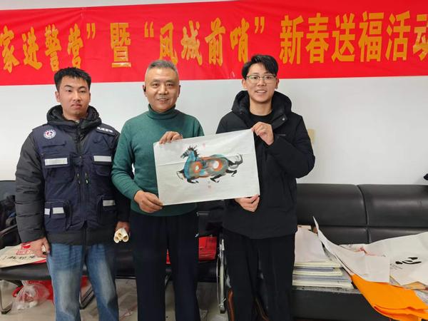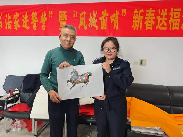 骏马迎春至,翰墨润警心。为传递徐州市局党委对基层一线民辅警的关心关怀,丰富警营文化生活,致敬丰县公安“凤城前哨”群防群治工作品牌,近日,徐州市公安文联书画家协会组织书画骨干,联合丰县文联书法家走进丰县警营,开展2026马年万福迎春写福送春联公益慰问活动,以笔墨传温情,以文化聚警心,为坚守岗位的巡防民辅警送上新春祝福。 活动现场墨香氤氲、年味浓郁,市县两级书画家们铺纸研墨、挥毫落笔,将马年吉祥寓意与公安履职担当融入笔墨之间。针对丰县公安“凤城前哨”巡处一体化、全民共治的工作特色,书画家们现场构思、专门创作“凤城前哨”主题书法作品与“前哨筑平安 凤城迎万福”“巡防守昼夜 金盾护家园”等定制楹联,一笔一画饱含对基层巡防民辅警日夜坚守的敬意,一字一句彰显警营文化与新春民俗的深度融合。 交流环节中,徐州公安文联书画家与丰县文联书法家现场切磋技艺、共话创作心得,同时与丰县巡防一线民辅警深入交流,详细了解“凤城前哨”运行成效、日常巡防勤务与为民服务事迹,对民辅警扎根基层、守护平安的奉献精神给予高度赞誉。书画家们还特别创作马年主题彩墨奔马作品,以骏马奋蹄的昂扬姿态,喻示丰县公安龙马精神、勇毅前行的工作风貌,作品一经完成便赢得现场阵阵掌声。 ![]() ![]() 此次活动不仅是新春文化慰问,更是市局党委关怀直达基层的暖心实践。书画家们将一幅幅大红春联、一个个吉祥福字、一幅幅主题书画作品送到民辅警手中,把组织的温暖与新春的祝福送到一线执勤人员心坎上。获赠作品的民辅警纷纷与书画家合影留念,大家表示,这份带着墨香的新春礼物既添年味,更鼓干劲,将把这份关怀转化为履职动力,守好“凤城前哨”、护好一方平安。 ![]() ![]()