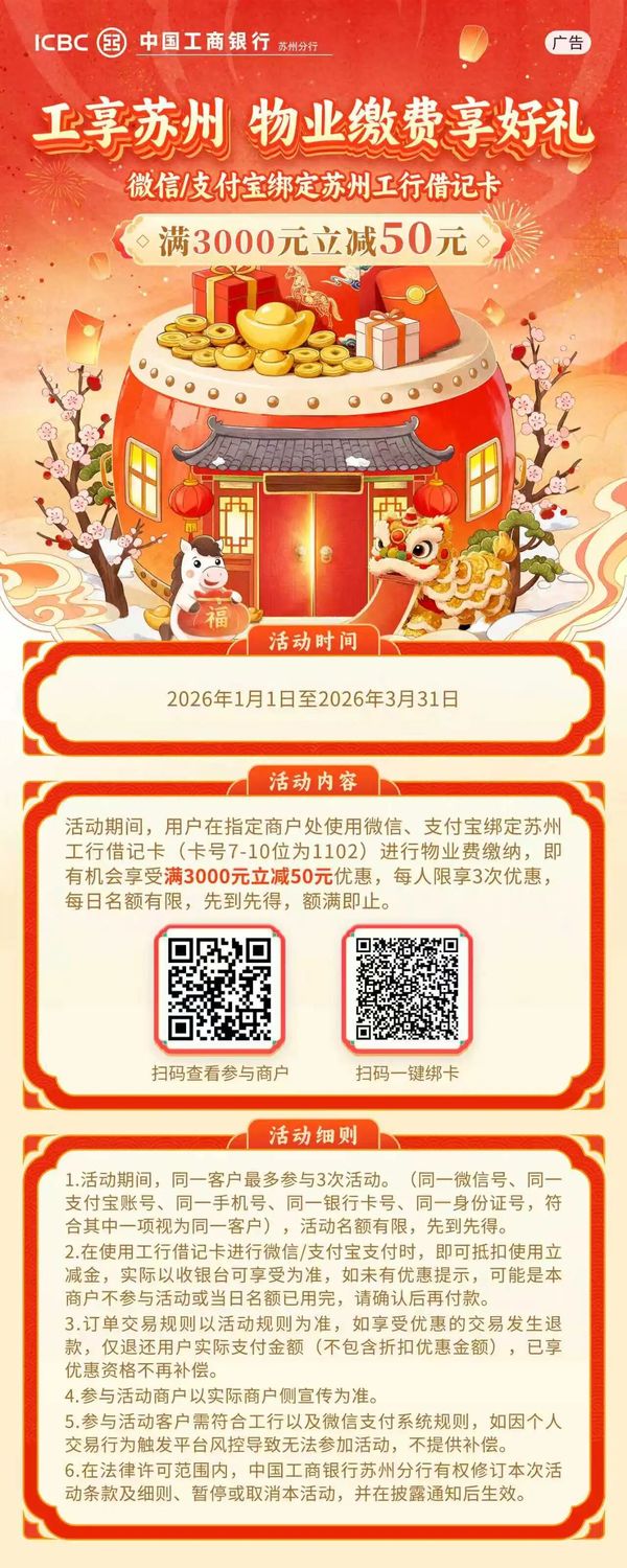 【工享苏州】物业缴费享好礼,满3000元立减50元 -凯发k8娱乐官网app下载