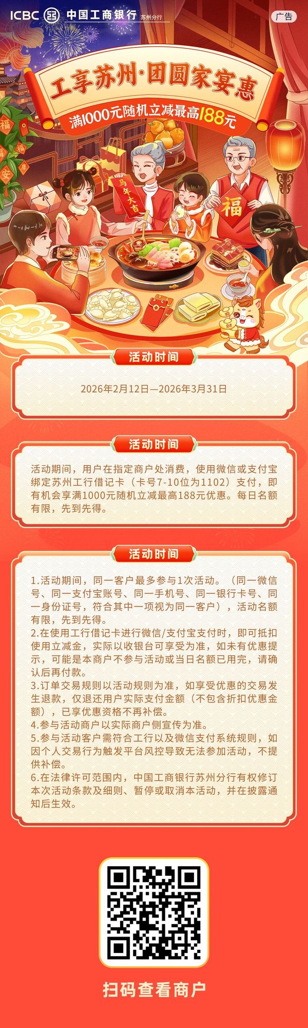 【工享苏州】团圆家宴惠,满1000元随机立减最高188元 -凯发k8娱乐官网app下载