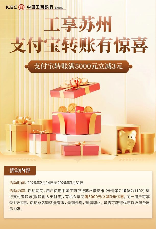 【工享苏州】支付宝转账有惊喜,满5000元立减3元 -凯发k8娱乐官网app下载