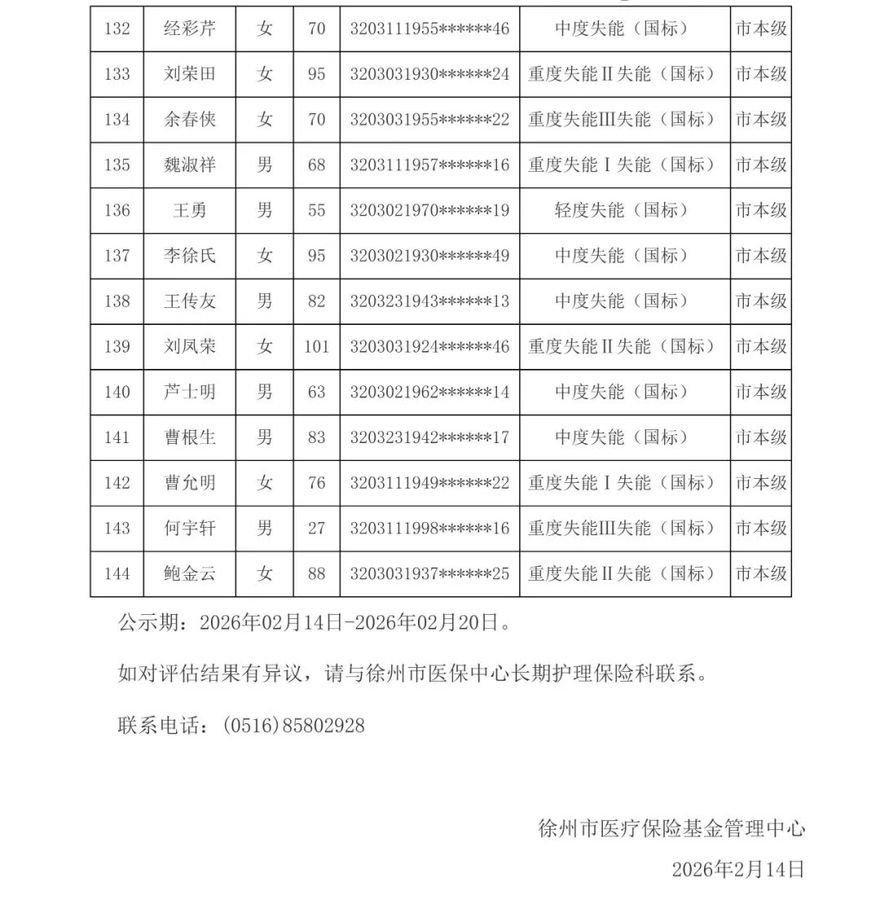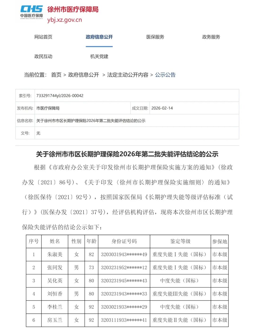关于徐州市市区长期护理保险2026年第二批失能评估结论的公示 -凯发k8娱乐官网app下载