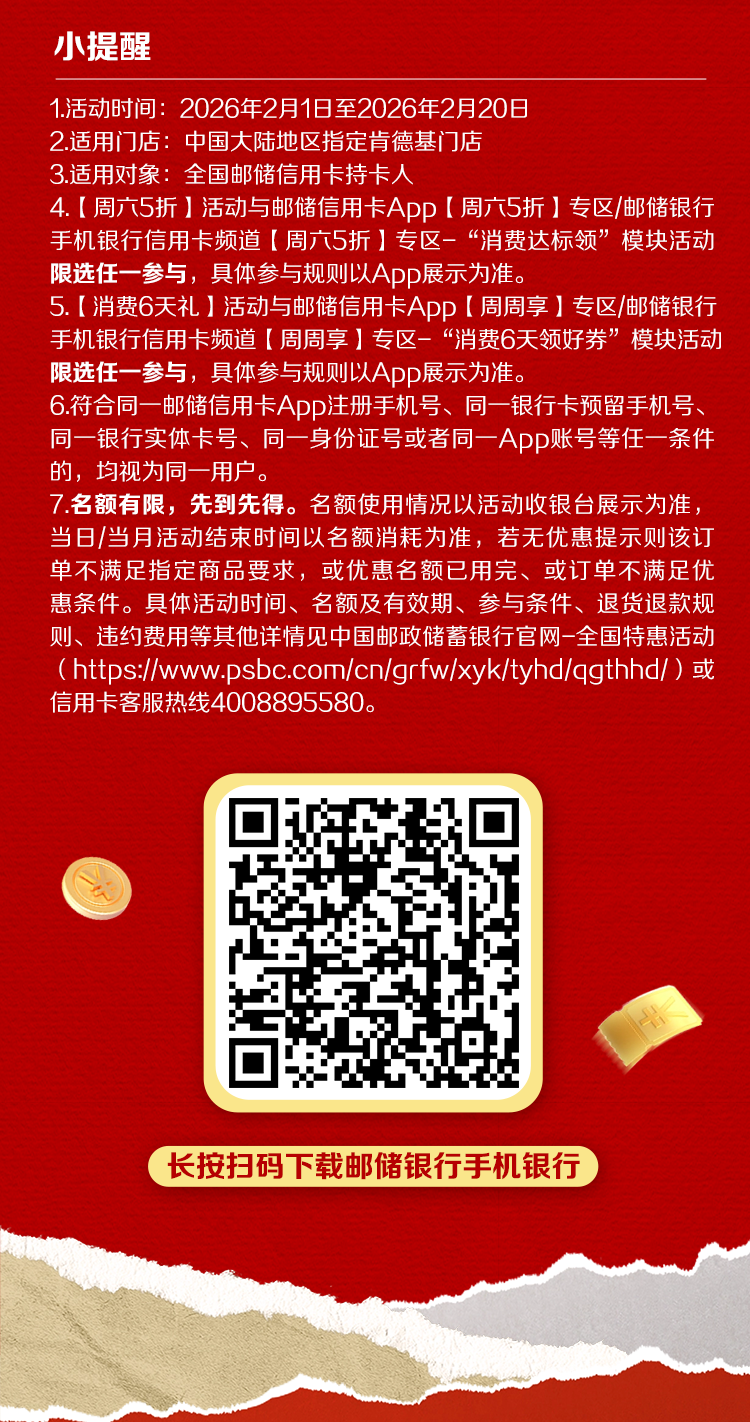 【周六5折】半价炫肯德基!邮储信用卡让我周末快乐翻倍 -凯发k8娱乐官网app下载