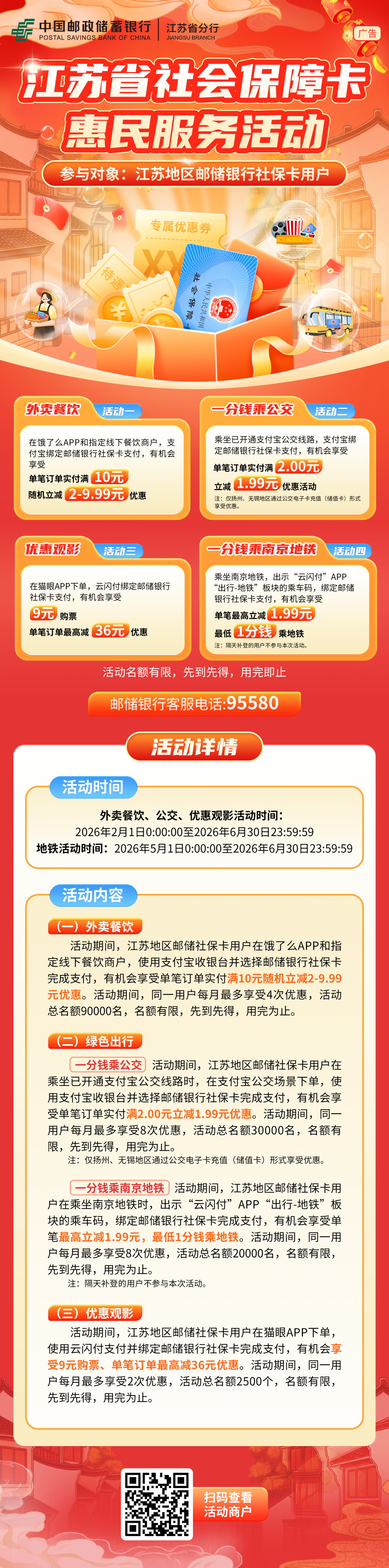 【福利】江苏邮储×支付宝,满减福利速来get!
