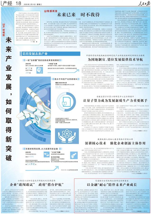 2月4日,《人民日报》刊发《未来产业发展,如何取得新突破》报道,介绍了交通银行持续深化对国家未来产业战略的金融支持,充分发挥“股贷债租托”的综合化优势,为产业发展提供全周期、一体化的综合金融凯发k8娱乐官网app下载的解决方案,以金融“耐心”陪伴未来产业成长。 ![]() 《人民日报》 2月4日 原文报道 习近平总书记1月30日在主持中共中央政治局第二十四次集体学习时强调:“培育发展未来产业,对于抢占科技和产业制高点、把握发展主动权,对于发展新质生产力、建设现代化产业体系,对于提高人民生活品质、促进人的全面发展和社会全面进步,都具有重要意义。” 当前,新一轮科技革命和产业变革加速演进,前沿技术不断涌现,引领和支撑未来产业快速崛起。我国未来产业的发展状况如何?下一步,如何从科技创新、企业发展、政策支持等方面发力,推动我国未来产业发展不断取得新突破?本版约请业内人士、专家学者和企业负责人,话发展、谈期待,共同为加快培育发展未来产业凝聚共识、加油鼓劲。 ——编者 以金融“耐心”陪伴未来产业成长 量子科技、生物制造、脑机接口等未来产业,是形成新质生产力的关键所在。它们技术迭代快、资产结构轻、前景不确定性高,对习惯于依据历史财务数据和固定资产抵押的传统金融服务模式,构成了根本性挑战。 未来产业的发展,不仅依赖科技突破,更需要金融体系实现结构性适配。服务未来产业,核心在于实现三大转变:从“看过去”向“看未来”转变,评估其技术潜力和团队价值;从“重抵押”向“重知识”转变,将知识产权、人才储备转化为信用支撑;从“单一融资”向“综合服务”转变,聚焦“投早、投小、投长期”,畅通“募投管退”全链条,提供覆盖全生命周期的耐心资本与产业资源对接。 交通银行将科技金融提升至战略高度,着力构建“专业研究 特色机构 复合人才”的服务体系。总行层面组建柔性研究团队,深耕集成电路、生物医药等重点行业,为全行提供专业指引。联合工业和信息化部,搭建联合实验室,强化创新积分与交行自研模型的深度融合。 在可控核聚变赛道,凯发k8娱乐官网app下载的服务则始于技术的萌芽期。一家依托顶尖团队、致力于强磁场小型化聚变电站技术研发的企业,在尚未产生稳定收入时便获得了我们的关注,我们不仅提供了高效的专属金融服务,更于2025年末成功落地6000万元关键股权融资。 交行将持续深化对国家未来产业战略的金融支持,继续紧盯未来产业的商业化进程,以更深的行业研究来指引更精准的金融服务,以更快的速度将服务上海科创中心的经验向全国辐射。同时,充分发挥“股贷债租托”的综合化优势,为产业发展提供全周期、一体化的金融凯发k8娱乐官网app下载的解决方案。 上一篇: 交通银行荣获上海金融创新奖五项大奖