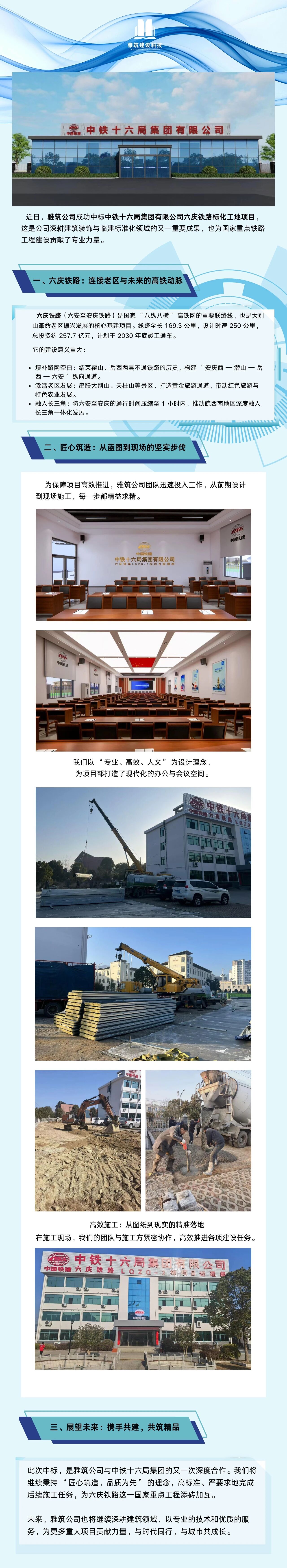雅筑公司中标六庆铁路中铁十六局标化工地项目 -凯发k8娱乐官网app下载