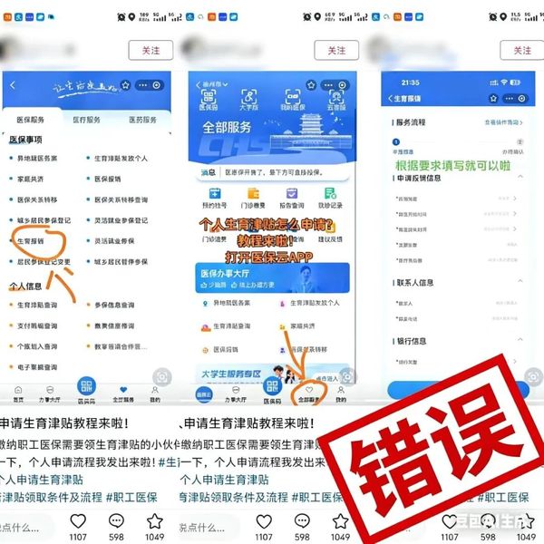 特此更正 ![]() 近期有部分网络用户发布“徐州市个人申请生育津贴教程”等信息有误,引发群众关注和咨询。为避免误导公众,保障参保群众正确申领生育津贴等相关待遇,特此更正如下: 以参保职工在生育定点医疗机构 完成生育医疗费用结算的日期为准 2025年11月1日(含当日)后 完成生育医疗费用结算的 生育津贴可以由医保经办机构 一次性直接发放给个人。 2025年11月1日之前 完成生育医疗费用结算的 生育津贴按照原渠道发放。 职工生育时其生育保险处于正常参保缴费状态,且连续参保缴费满10个月。 徐州市本地参保职工可在完成生育医疗费用结算后30个工作日(45个自然日)内,通过江苏医保云app-“我要办”-“生育津贴发放个人”模块申领。步骤如下: ⑴ 登陆江苏医保云app ⑵ 点击“我要办” ⑶ “生育津贴发放个人”模块申领 ![]() ![]() 在此提醒广大参保群众,提高信息甄别能力,切勿轻信非官方来源的不实信息,更要谨防个人信息泄露或财产损失。医保相关政策及业务办理信息请以徐州市医疗保障局凯发k8娱乐官网app下载官网和“徐州医保”微信公众号发布为准。 政策依据 《江苏省医疗保障局 江苏省财政厅 江苏省人力资源和社会保障厅 国家税务总局江苏省税务局关于调整生育保险生育津贴发放方式的通知》 上一篇: 马年焕新颜,迎新春变美小妙招来啦