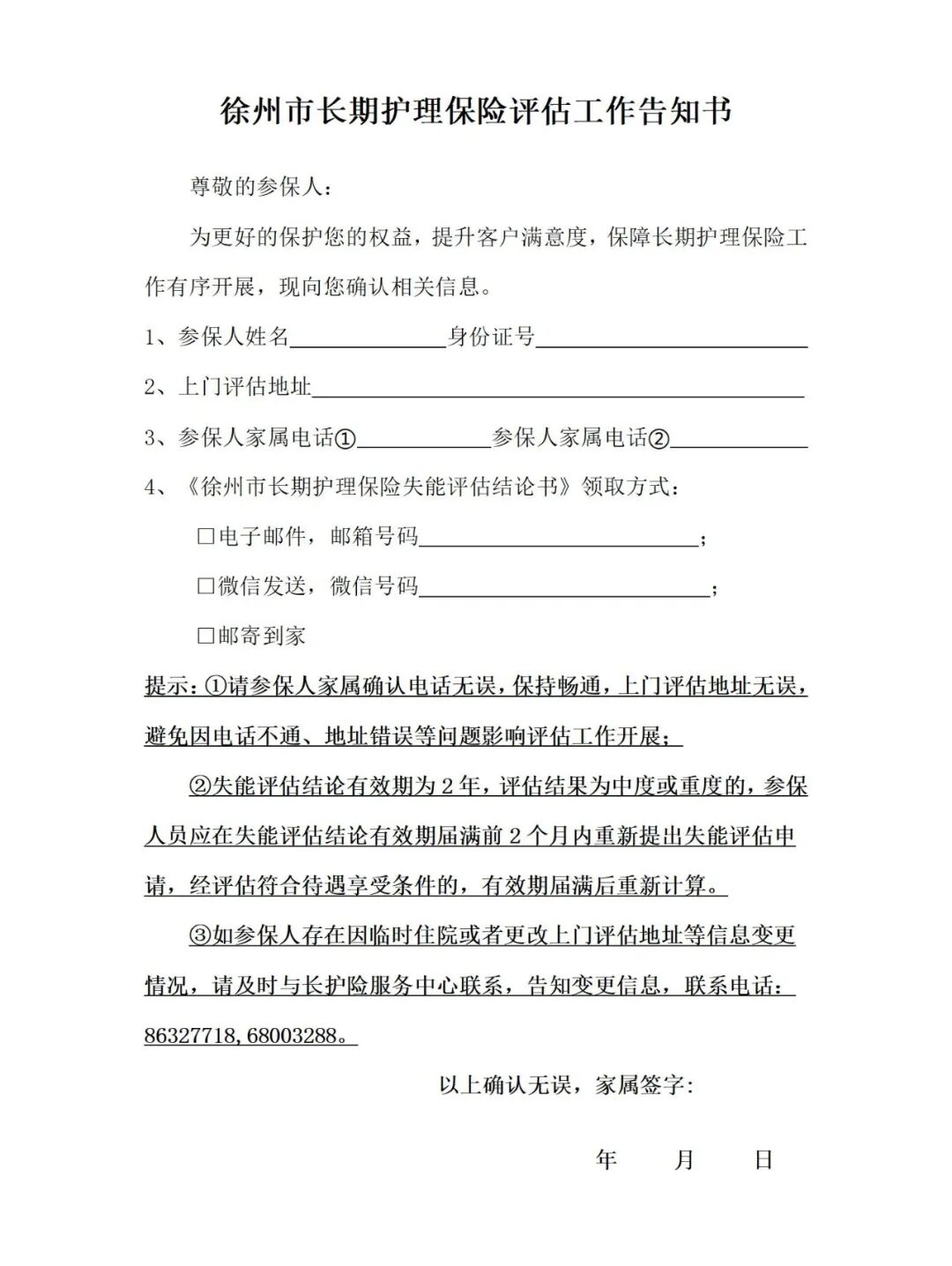 《徐州市长期护理保险评估工作告知书》