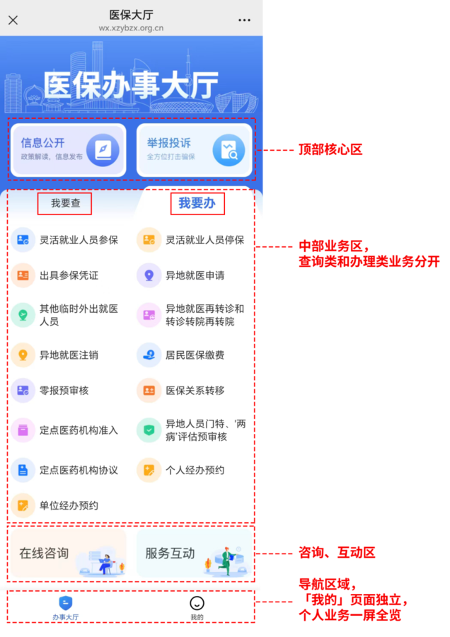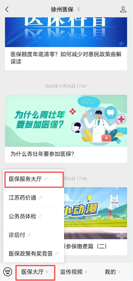 为持续优化医保线上服务体验,提升系统稳定性与便捷性,我市微信公众号医保服务大厅将进行系统升级与渠道切换,现将有关事项公告如下: 一、旧平台下线时间 2026年3月31日 17:30 起,原医保线上服务大厅从微信公众号菜单下线停用,届时将无法通过原入口办理相关业务。 二、新平台上线时间 2026年4月1日 9∶00 起,全新医保线上服务大厅正式挂载至微信公众号菜单,参保群众可通过公众号菜单正常进入新平台办理业务。 请广大参保单位、参保人员相互转告,合理安排业务办理时间。由此给您带来的不便,敬请谅解。 医保服务大厅焕新升级! 新老系统对比&操作指南来啦~ 亲爱的参保朋友们: 咱们的医保服务大厅系统悄悄 "焕新" 啦!界面更清爽、功能更清晰,不少小伙伴都在问新系统怎么用。今天就以咱们参保人的视角,带大家看看新老系统的区别,手把手教您玩转新平台。 一、界面大变身:从 “长列表” 到 “模块化” 老系统:功能密集,信息偏紧凑 老版界面采用长列表布局,个人中心、线上办理、公共查询等模块纵向堆叠,需要上下滑动才能找到目标业务,字号过小,对不熟悉操作的朋友不太友好。 新系统:分区清晰,一目了然 ![]() 新版界面做了模块化分区,视觉更清爽: 顶部核心区:信息公开、举报投诉两大入口直接展示,政策解读、打击骗保一键直达。 中部业务区:「我要查」「我要办」双标签切换,把查询类和办理类业务彻底分开,再也不用在一堆按钮里 “找半天”。 底部个人区:「我的」页面集中展示参保信息、缴费明细、医保个账等核心数据,个人业务一屏全览。 新增互动区:「医保剧场」板块上线,用小剧场、动漫、短视频的形式科普医保政策,轻松 get 知识点。 ![]() 二、核心业务办理:路径更短,操作更顺 1. 个人信息查询 老系统:在「个人中心」板块,需要从长列表里找到对应入口。 新系统:直接点击底部「我的」,参保信息、医保支付明细、缴费明细等全部集中展示,点进去就能看,步骤更少。 ![]() 2. 业务办理入口 老系统:所有办理业务混在「线上办理」长列表中,比如灵活就业参保、异地就医申请等,需要仔细辨认。 新系统: 切换到「我要办」标签,所有可办理业务按类别分组。 高频业务(如异地就医申请、居民医保缴费、医保关系转移)优先展示,一眼就能找到。 ![]() 3. 政策与互动 老系统:政策信息藏在底部,互动功能较少。 新系统: 顶部「信息公开」直接放政策解读、信息发布。 新增「医保剧场」板块,用趣味形式宣传医保知识,再也不用啃枯燥的政策文件。 ![]() ![]() 三、新医保办事大厅操作指引(超简单版) 第一步:进入公众号 新版医保服务大厅入口还是在“徐州医保”微信公众号。 ![]() 打开微信,找到并进入 “徐州医保” 微信公众号,点击页面左下角的 【医保大厅】,在弹出的菜单中选择 【医保服务大厅】。 第二步:查询个人信息 点击底部「我的」→ 登录后即可查看参保信息、缴费明细、医保个账划入医保支付明细、门慢门特查询等。 第三步:办理业务 回到「办事大厅」,切换到「我要办」标签;选择对应业务(如异地就医申请、居民医保缴费等);按页面提示填写信息、提交材料,完成办理; 第四步:了解医保政策 点击「医保剧场」,选择「晓宇说医保」「医保小剧场」「医保小动漫」,趣味学习医保知识~ 这次系统升级,就是为了让咱们参保人少跑腿、好办事、不费心。如果您还没体验过新系统,赶紧打开试试吧!有任何建议,也欢迎在「服务互动」里告诉我们~ 最后,祝大家都能轻松玩转医保新平台,享受更便捷的医保服务!