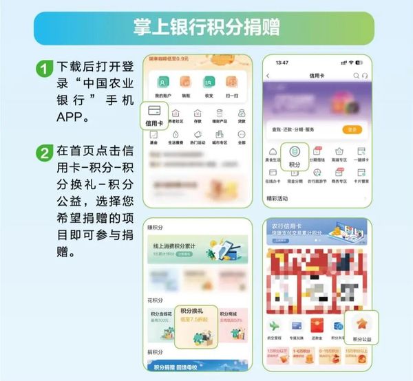 今天是第63个学雷锋纪念日和第27个中国青年志愿者服务日。农业银行深化“小积分·大梦想”公益行动,聚焦“一老一小一绿色” 领域,推出“农情助老孝亲”、“农情助学圆梦”、“农情希望教室”、“农情绿色家园”四大项目,汇聚爱心积分支持公益事业。同时,发动广大青年志愿者广泛开展志愿服务,关爱老人、关爱儿童、关爱自然,持续传递农行温度,续写十年志愿公益新篇章。 ![]() 农情暖万家,公益践初心 “小积分·大梦想”公益行动由农业银行联合中国青少年发展基金会共同开展,号召农业银行信用卡持卡人捐赠爱心积分转化为公益善款。 该项目历经十余年深耕,已覆盖全国34个省级行政区,累计募集善款超千万元,帮助3896名乡村留守儿童圆梦求学,为136所学校的816个班级搭建图书角,种植千余亩农行青年林,建成7所“青年之家”,曾荣获中国青年志愿服务项目大赛全国银奖等十余项奖项。 在积分落地同时,农业银行各级团组织带领全行青年志愿者广泛开展助老、助幼、助残、助农等志愿服务,在服务国家战略、服务百姓民生、服务社会治理等方面展现青春担当。 在“3・5”学雷锋纪念日,我们号召大家一起奉献爱心,600积分可兑换1元善款,以点滴积分汇聚磅礴善意,以小小善举成就温暖梦想。 微信扫描下方二维码,即可进入农业银行手机银行捐赠页面,指尖轻触就能参与“小积分・大梦想”公益行动。同时,还可通过农业银行信用卡官方客服热线,“农业银行信用卡”官方微信公众号、微信小程序等多个渠道捐赠。 ![]() ![]() 捐农行积分,圆公益梦想 农情助老孝亲 用爱守护晚年时光 “农情助老孝亲”项目聚焦老年群体,组织农行青年志愿者携手高校青年力量,深入社区帮助老人使用智能设备。开展金融知识科普、空巢老人陪伴等贴心服务,用知识守护安全,用陪伴驱散孤独,用行动传递温暖。 捐助标准 5400元,为一个社区提供一年的助老服务。 ![]() 农情助学圆梦 微光成炬照亮求学路 “农情助学圆梦”项目聚焦义务教育阶段家庭经济困难、学习努力的乡村在校学生,为他们送去学习与生活的暖心资助,帮助孩子们点亮自己的小小心愿。 捐助标准 1000元,为一名困难学子提供一学年助学金;200元,可帮助一个孩子实现拥有新书包等小小心愿。 ![]() 农情希望教室 让梦想全面绽放 “农情希望教室”项目助力乡村教育提质升级,为乡村小学精心打造图书室、音乐室、美术室、多媒体室等特色功能教室,补齐乡村教育设施短板。努力让更多的乡村孩子看见更广阔的世界,让希望在课堂生根,让视野跨越山海。 捐助标准 2000元,可筑就一个快乐阅读角;9000元,能搭建一座暖心图书室;18000元,可创设一间美育教室或配齐一套专业体育器材;22500元,能打造一间音乐教室;90000元,可建成一间联通世界的多媒体教室。 ![]() 农情绿色家园 铺展锦绣画卷 “农情绿色家园”项目积极投身长江、黄河等重点流域生态环境保护,捐植生态公益林,践行绿色发展理念,为山河添翠,为家园护绿。 捐助标准 1000元,可捐植一亩灌木林;4000元,可捐植一亩乔木林。 ![]() 初心如磐,善行致远。农业银行将始终坚守金融为民初心,以志愿微光传递人间大爱,为促进社会和谐、推动社会进步贡献更多金融力量。