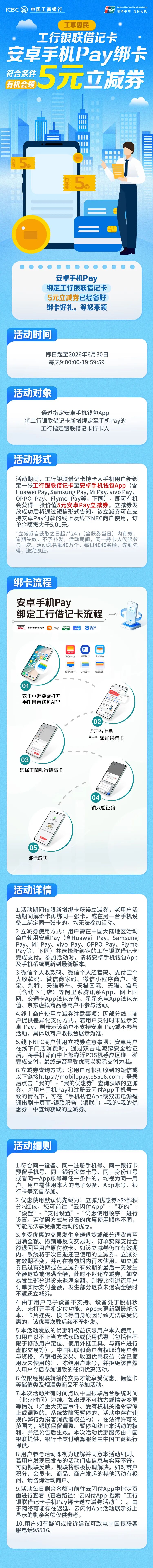 【工享惠民】工行银联借记卡绑定安卓手机pay,有机会领5元立减券! -凯发k8娱乐官网app下载