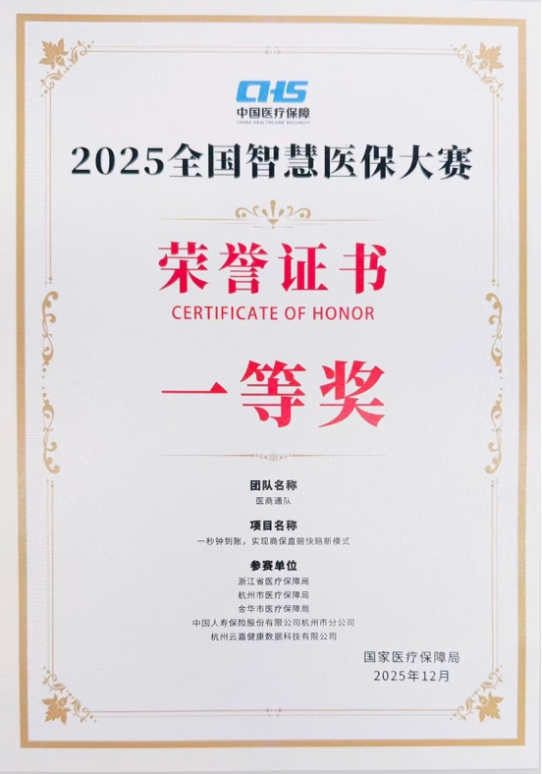 近期,全国智慧医保大赛颁奖仪式在上海举行,中国人寿集团旗下寿险公司在数智医保领域的创新实践与深度应用获得认可,共有4个分支机构项目荣获奖项。其中,杭州市分公司摘得一等奖,广州市分公司与清远分公司分获二等奖,广西壮族自治区分公司荣获三等奖,充分展现了中国人寿在服务国家医疗保障体系建设、推动医保数字化转型中的实力与担当。 本次大赛由国家医保局和上海市政府联合主办,旨在激发新一代信息技术在医保改革中的创新活力,进一步促进医药健康产业创新发展,提升人民群众健康保障水平。大赛设置创新药物研发、上市后真实世界研究、药械综合价值评价等11个参赛领域,共吸引全国802支队伍参赛。经过层层角逐,最终178支队伍脱颖而出。 医疗保障是民生之基、幸福之盾。中国人寿各地分支机构积极发挥优势,充分结合地方多样性、个性化需求,以数智技术为纽带,整合优质资源,为构建智慧医保新生态,提升民生保障质量提供了可落地、可复制的实践路径。 一等奖 中国人寿寿险杭州市分公司 一秒钟到账 实现商保直赔快赔新模式 中国人寿寿险杭州市分公司积极响应国家医保局提出的“1 3 n”多层次医疗保障体系建设部署,配合省医保局推动医保商保“双平台一通道”模式的试点落地,为投保人提供优质高效的快赔直赔服务,推动医保与商业健康保险有序衔接、协同发展。 该应用在浙江省医疗保障局的牵头下,依托浙江省智慧医保平台(医保平台)、商保综合服务平台(商保平台)为核心载体,通过硬件加密专线(“一通道”可信空间)搭建安全数据交互链路。平台聚焦参保人核心需求,提供身份核验、医保结算信息实时推送、商保自动理赔计算、资金清算等全流程服务,创新覆盖快速理赔、直接理赔、核赔核保、商保产品开发四大关键场景。项目突破“基本医保与商保独立运营”的传统理念,首次在省级层面构建“医保 商保”协同服务体系,通过数据可信空间实现“医保结算与商保理赔同步化、健康管理与保险服务一体化”,推动医疗保障从“事后赔付”向“事前预防、事中干预、事后保障”全周期服务转变。 2025年度,杭州市惠民保、企业补充医疗保险、个人商业医疗保险等商保“一站式结算”累计理赔94.52万人次,惠及参保群众9.14万人,赔付金额2.62亿元。中国人寿寿险杭州市分公司凭借丰富的项目运营经验,为系统研发提供了大量真实理赔数据及核心业务支撑。项目的落地不仅提升了医疗保障服务的公平性与可及性,完善了多层次医疗保障体系,更增强了社会互信,为数据要素流通应用树立了行业标杆。 ![]() 二等奖 中国人寿寿险广州市分公司 多层次医疗保障 精准赋能与协同平台 对群众而言,实现医保、商保、医疗救助“一站式结算、无感秒理赔”,理赔周期从5-7天缩短至10秒内,彻底缓解垫资压力;针对特殊群体优化服务,解决操作难题,让保障更具温度。对行业而言,商保核保、理赔效率大幅提升,推动商保行业从“规模扩张”向“质量提升”转型;助力医保治理精准化,缓解基金支出压力。对社会而言,平台激活健康产业生态,推动医疗保障与健康管理深度融合,形成“保障促健康、健康减负担”的良性循环,为健康中国建设提供有力支撑。 ![]() 二等奖 中国人寿寿险清远分公司 智联政医保 闪付惠民生 中国人寿寿险清远市分公司与政府部门(清远市医疗保障局)、公立医疗机构(清远市清新人民医院)三方联袂,突破传统服务藩篱,成功构建起社会医疗保险(医保)与商业保险在医疗机构内实现患者医疗费用“直付”的合作新模式。清远“直付”模式通过系统直联、信息互通与结算协同,大大缓解了群众的“跑腿之累”:患者在清新人民医院出院时,仅需支付经基本医保与清远国寿商保共同报销后的个人自付部分,无需垫付医保与商保覆盖的费用。 清远“直付”模式落地,彻底打破了过去医保、商保“两条线、两套流程”的壁垒,实现了“进一家门、办多家事”的服务升级,医保与商保快速完成同步结算,医疗费用报销结算时间可压缩至5分钟以内,群众就医结算服务效率显著提升,从“患者跑腿”到“数据跑路”,群众省却了收集单据、往返奔波之苦,就医过程的“尊严感”与“获得感”显著提升——在试点医院服务调研中,“直付”模式落地后,患者对结算服务的满意度从68%提升至95%以上。目前,清远市辖内6家主要医院已陆续加入项目,并启动系统对接开发 ,未来随着“直付”服务范围的进一步拓展,客户受益面将持续扩大。 ![]() 三等奖 中国人寿寿险 广西壮族自治区分公司 “数智护航·大病无忧” 医保商保协同下的 仿真测算与精准监管平台 为从“群众跑腿”向“数据跑路”、从“单点监管”向“全程防控”、从“被动理赔”向“主动预测”转变,在广西壮族自治区医疗保障局的指导下,中国人寿寿险广西壮族自治区分公司启动建设广西医保仿真测算与精准监管平台,旨在通过科技赋能大病保险提质增效,构建“精准化、协同化、可持续”的医疗保障体系。平台聚焦医保商保协同中的数据融通、动态监测、联动风控三大核心应用场景,建成了“1库 1平台 3子系统”的医疗保障闭环支撑体系,即建设全区医保数据底座,搭建一体化业务平台,构建大病理赔、医保商保智能监管审核、医保基金仿真测算三大核心业务子系统。 在平