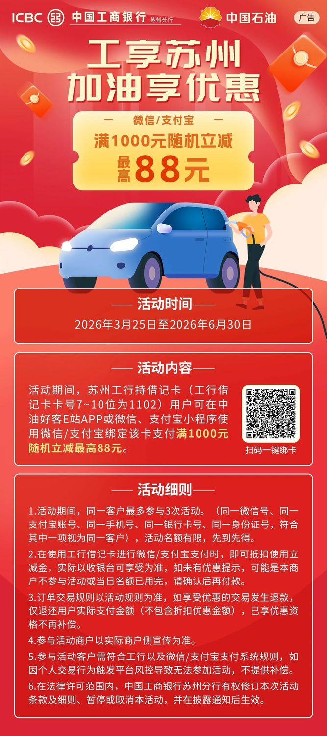 【工享苏州】加油享优惠,满1000元随机立减最高88元 -凯发k8娱乐官网app下载